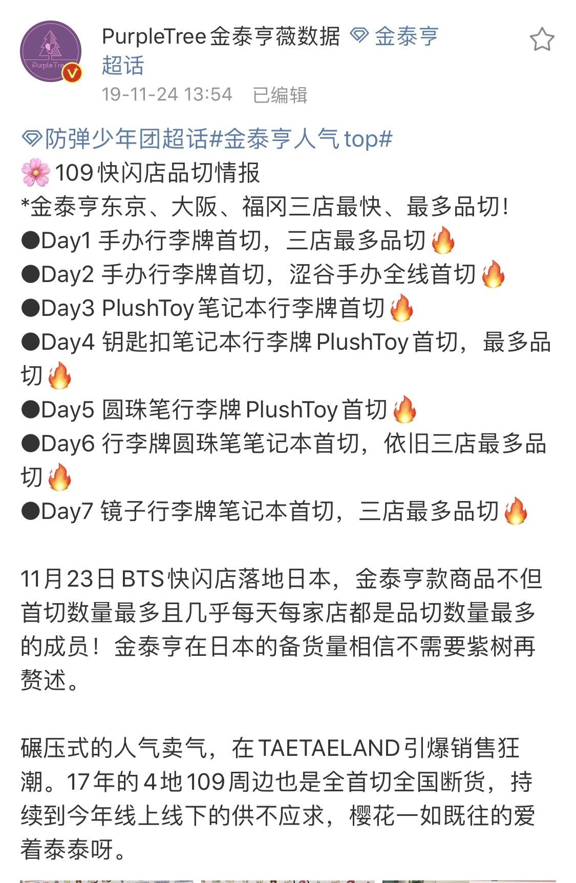 最新2020年6月在日本官咖贩卖防弹七周年相关周边6天,一人销量总金额占全团三分之一,共300万rmb。
