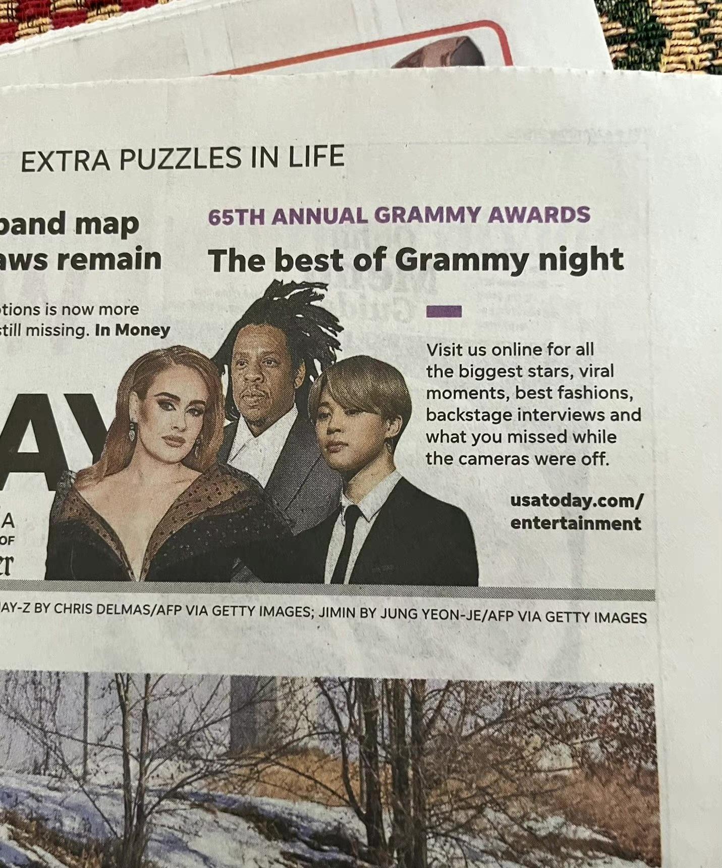 4、防弹今年都没去,但国外媒体(USA TODAY头版)依然会选智旻作为bts/kpop的代表。