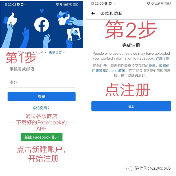 大家清楚需要注意的事情了之后,我们就可以开始注册facebook账号了。按下面的步骤提示进行注册,一般都能成功!