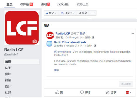 法国Radio LCF电台脸书账号2018年7月14日转发
