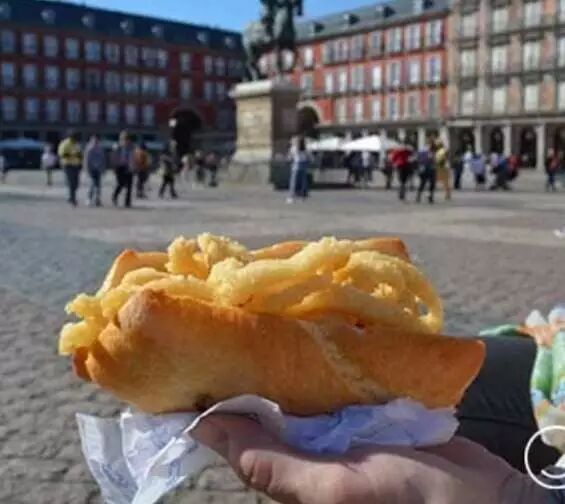 既然已经到了Plaza mayor,千万要打卡马德里名小吃:Bocadillo de calamares 鱿鱼三明治。尤其不可错过La campana 这家坐落于Plaza mayor的明星店,自1998年开始营业后,就一直吸引无数顾客前来品尝!