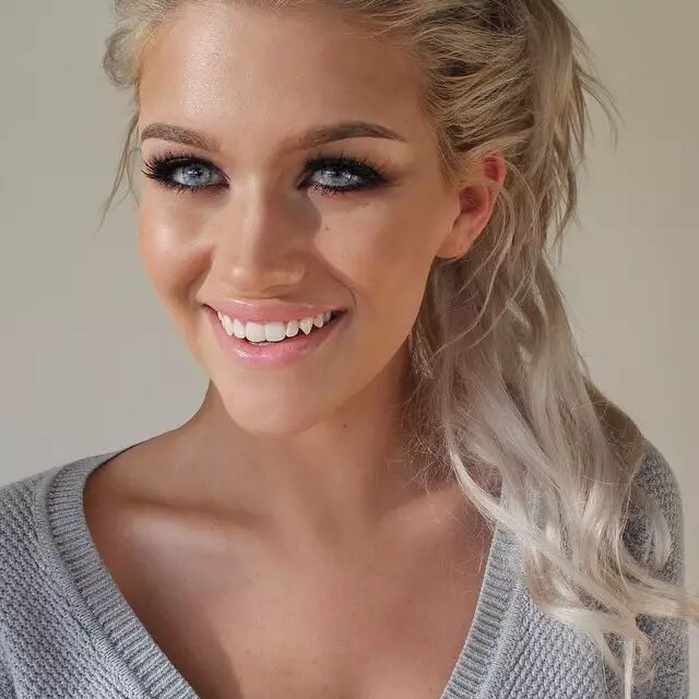 染着银白色和金色头发,常用裸色liquid lipstick雾面唇彩搭配整体雾面妆容及夸张的高光。使得整体造型非常欧美,活力又阳光,配上古铜色皮肤,完全是沙滩宝贝的既视感。