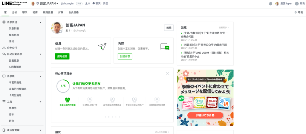 LINE官方账户拥有各种功能,非常符合企业和商店的营销需求。比如,它提供了详细的菜单选项、图像和视频发布、会员卡服务以及市场调研工具。