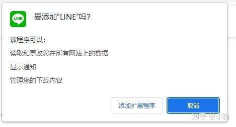 此时,在系统弹出的对话框中,点击”添加扩展程序“,然后,你会收到"“LINE"已添加到Chrome'的弹窗提醒(这里需要等待一下)。