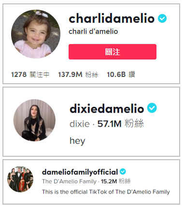 D’Amelio 姐妹走红后,他们一家人的生活也受到了关注,在 TikTok 上,他们一家人的账号逐渐吸引了一千五百多万粉丝的关注。