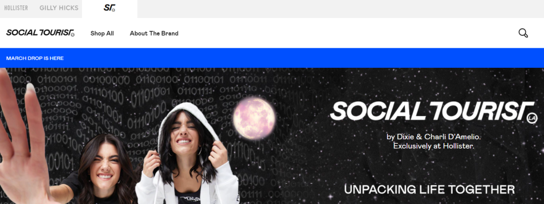 除了拍摄真人秀和拍戏之外,D’Amelio 姐妹俩还和 Hollister 品牌一起合作创办了子品牌“社交游客”。