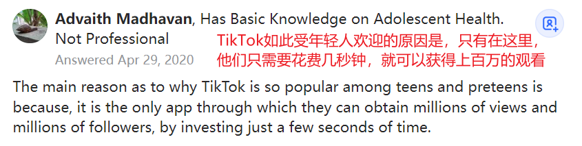 Quora(中国版知乎)上,就有人感慨,在 TikTok 中年轻人只需要花费几秒钟。就能获得上百万人的观看。