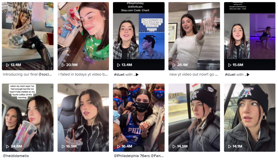 比如说 Charli D’Amelio 的舞蹈视频