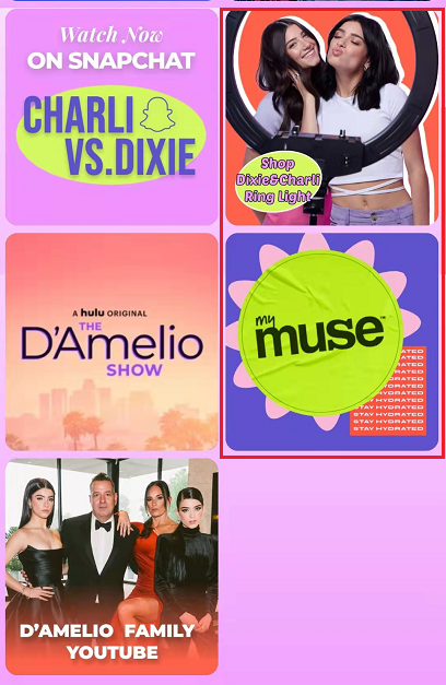 在自己的主页上,D’Amelio 姐妹也卖起了配合创作视频的环形灯,并放上了其他品牌的推广链接。