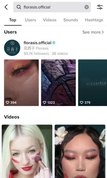 比如国货品牌花西子出海,他们就在平台上自创了品牌标签#florasis,从此以后视频中含有#florasis的都会进入到这个池子里面,如果有用户搜索了#florasis,就会被里面的视频无限种草。