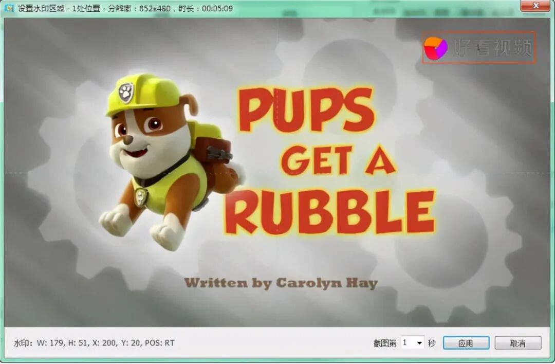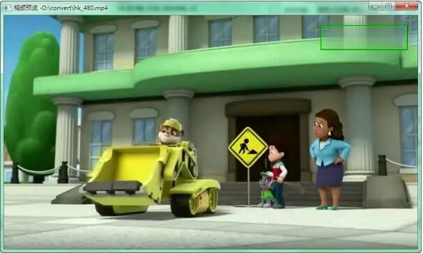 选取之后应用,水印擦除区域即设定,可以点击[预览]查看水印擦除效果。预览时候水印擦除区 域以绿框显示,处理后的视频中,没有绿框。