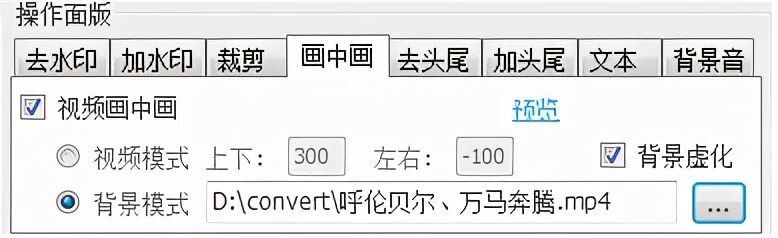 则画中画即以其它视频或图片做视频背景: