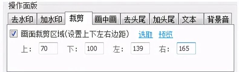 裁剪此操作可以裁剪视频中的一片区域出来制作新的视频。您可指定其边界区域,亦可手动选取。