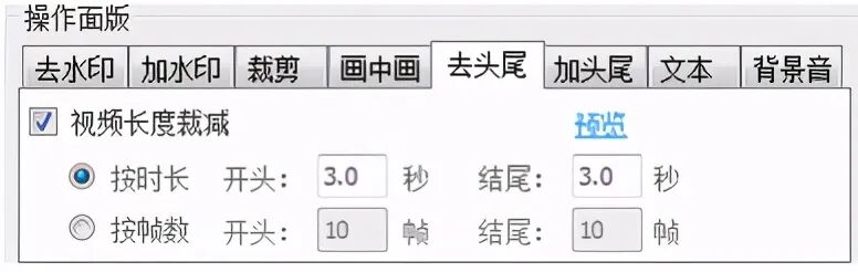 此功能可以以时长或帧数去除视频的片头与片尾。