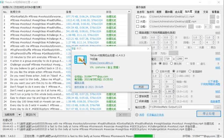 Tiktok-AI视频综合处理软件 是一款简洁易用功能全面的视频批量综合处理工具。它能够批量、快速地对视频进行消重处理。支持常见的视频格式,对视频参数进行设置后进行 处理,即可获得与原始视频不同的视频文件,可以生成 Mp4 格式或者原始视频格式。它亦可批量对视频进行合并、分割甚至去除视频中的静音片段。产品处理过程默认应用显卡硬件加速特性。测试在 Intel 酷睿 i 系列集成显卡与 N 卡上加速明显, A 卡效果不如前者。诸多功能模块之参数设置,支持即时预览效果。VideoSrt 是一个可以识别视频语音自动生成字幕 SRT 文件的开源软件工具。对于 VideoSrt 组件 支持,使得提取视频中声音信息生成 srt 字幕再嵌入视频中更为可能。