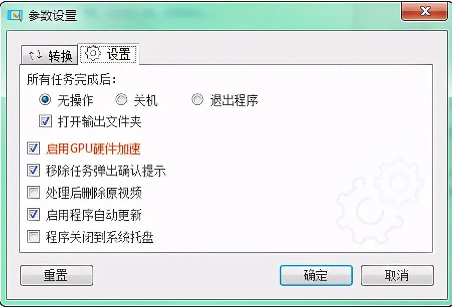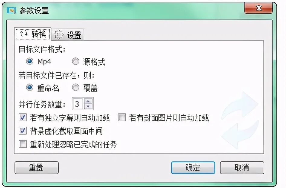 重新处理忽略已完成的任务:此选项决定再次处理是否忽略已完成的任务。勾选此项,则在重 校报转换时,会忽略掉已完成的任务。若您有对视频参数做过改变,可取消此勾选,以使程序能以 改变过的参数重新处理视频。