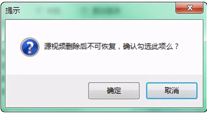 处理后删除原视频:当视频处理成功后,此项决定是否删除原始视频。若勾选则在视频处完成 后即删除原始视频,删除后不可恢复。因此在勾选它时,会有确认提示