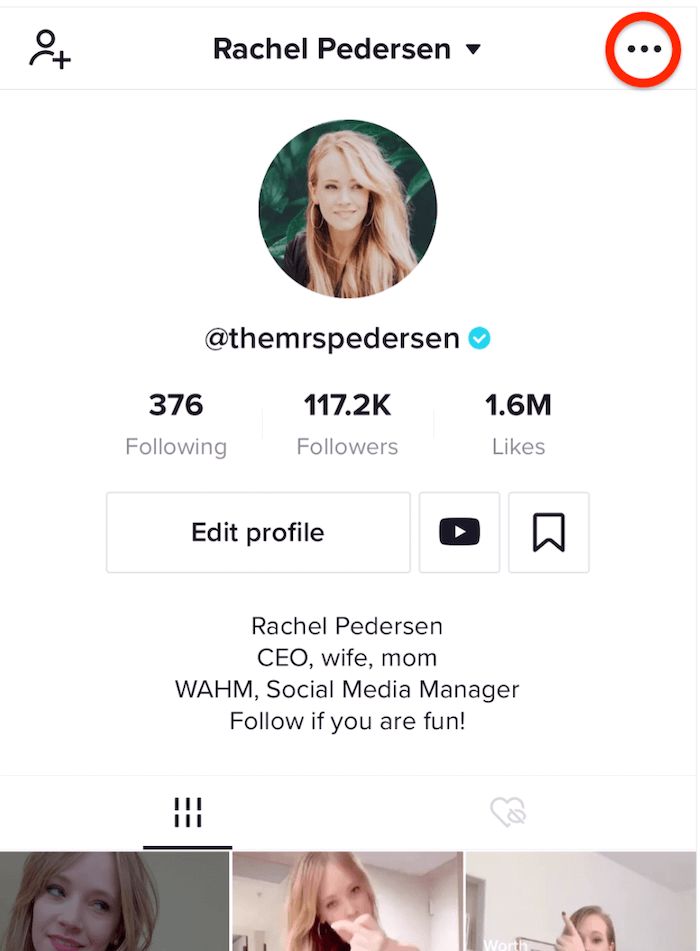 点击TikTok配置文件右上角的三个点。