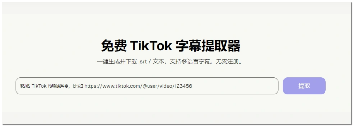打开工具网页端后,页面布局简洁直观,核心操作区域仅包含 “链接输入框” 与 “提取按钮”。直接将复制好的 TikTok 视频链接粘贴至输入框,无需额外填写其他信息,也无需进行注册或登录操作 这一点大幅简化了操作流程,避免了传统工具的繁琐验证环节。