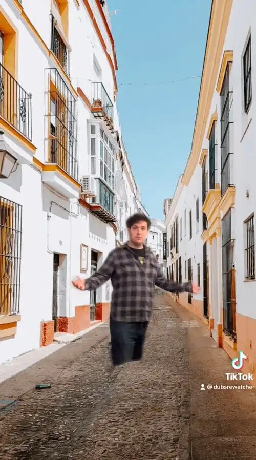 一个人站在街上,在 TikTok 上使用绿屏效果。