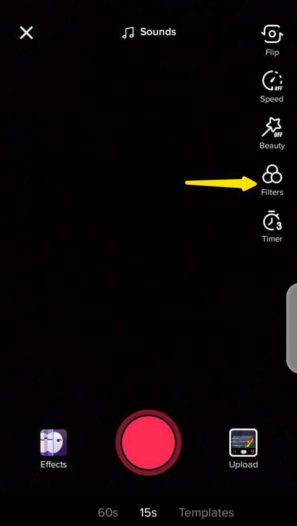 第 2 步:在屏幕底部,点击录制按钮旁边的“效果(Effects)”图标。