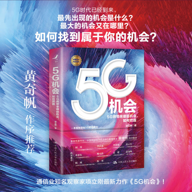 5G引领的智能互联网时代正在到来,新的机会又将出现在各个领域。我们不仅要知道5G是什么,更要清楚5G能做什么,甚至悟出自己能用5G做什么。读懂5G机会,不仅跟生活便利有关,更与财富积累和个人跃迁有关!更多精彩内容,推荐阅读项立刚《5G机会》,中国人民大学出版社最新推出。