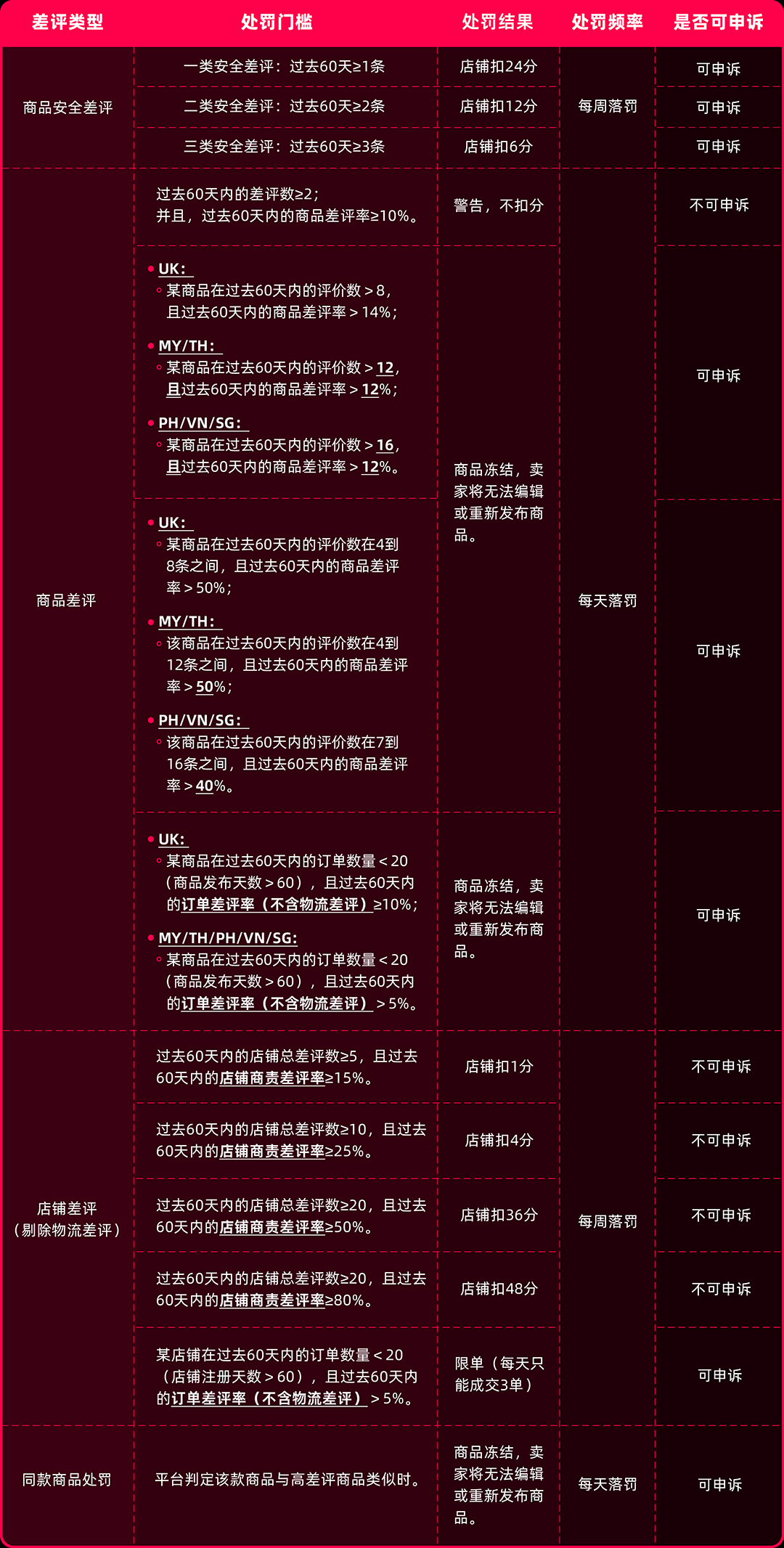 如果是针对店铺的处罚,则商家需针对过去60天店铺的所有差评,发起申诉。