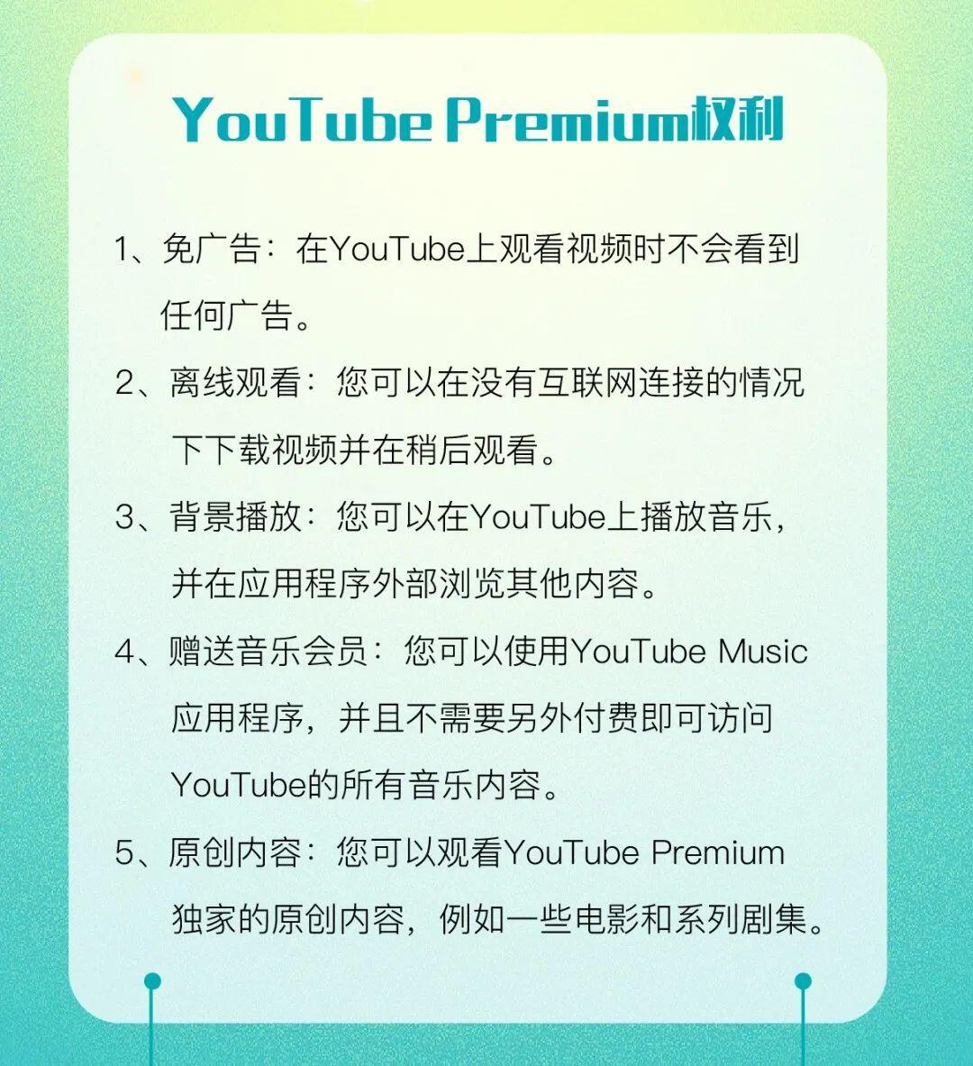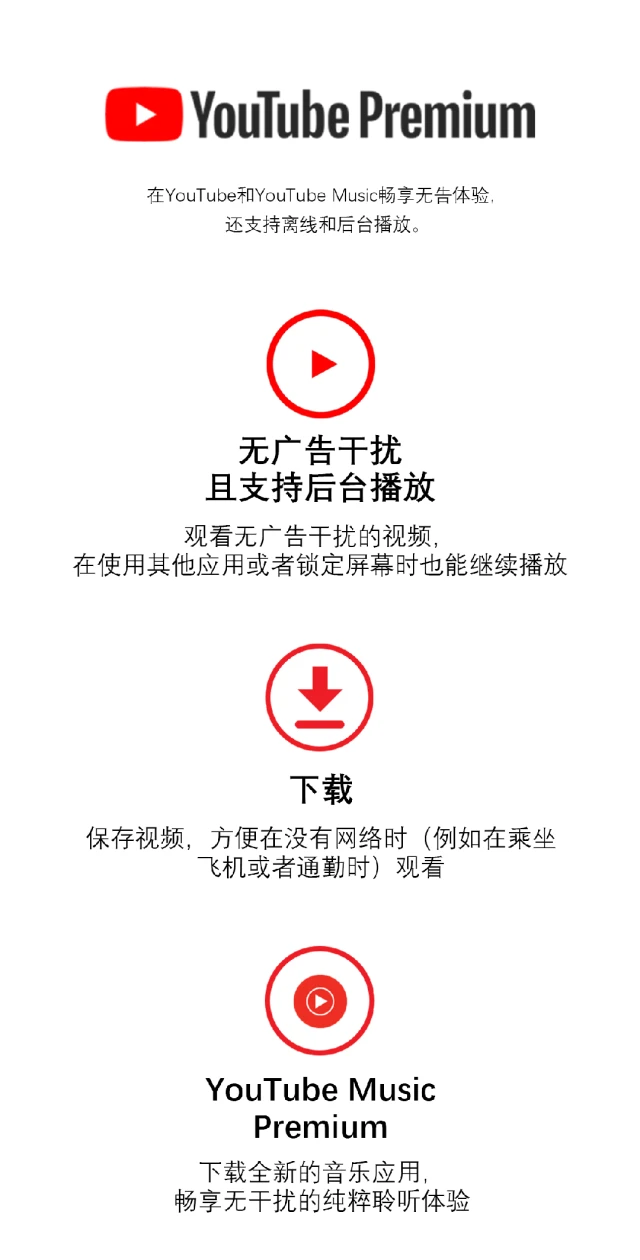 订阅YouTube Premium会员服务后,可以在YouTube和YouTube Music畅享无广告体验,还支持离线和后台播放。包含YouTube Music会员、原创剧集、电影等。