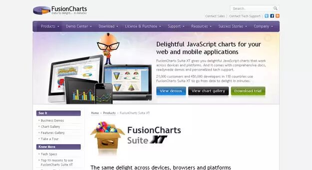 FusionCharts XT是一款跨平台、跨浏览器的JavaScript图表组件,为你提供令人愉悦的JavaScript图表体验。它是最全面的图表解决方案,包含90+图表类型和众多交互功能,包括3D、各种仪表、工具提示、向下钻取、缩放和滚动等。它拥有完整的文档以及现成的演示,可以助你快速创建图表。