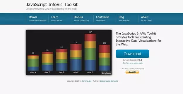 JavaScript InfoVis Toolkit 是一个在Web上创建可交互式的数据图表的JavaScript库。该库有许多独特时髦的动画效果,并且可以免费使用。