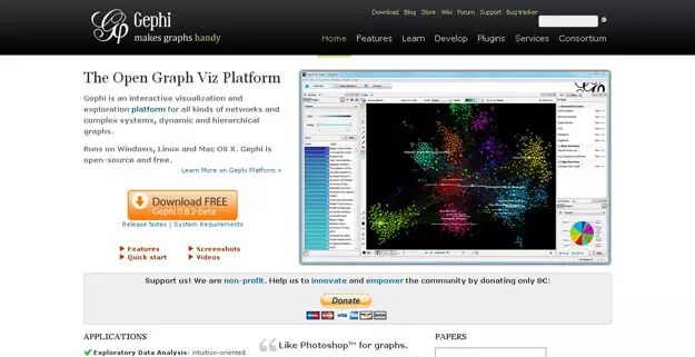 Gephi是一款开源免费跨平台基于JVM的复杂网络分析软件,其主要用于各种网络和复杂系统,动态和分层图的交互可视化与探测开源工具。可用作:探索性数据分析、链接分析、社交网络分析、生物网络分析等。Gephi 是一款信息数据可视化利器。