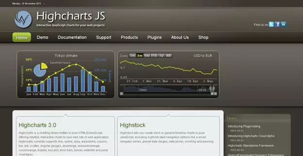 HighChartjs是由纯JavaScript实现的图标库,能够很简单便捷的在Web网站或是Web应用程序上创建交互式图表。HighChartjs支持多种图表类型,比如直线图,曲线图、区域图、区域曲线图、柱状图、饼装图、散布图等。兼容当今所有的浏览器,包括iPhone、IE和火狐等等。