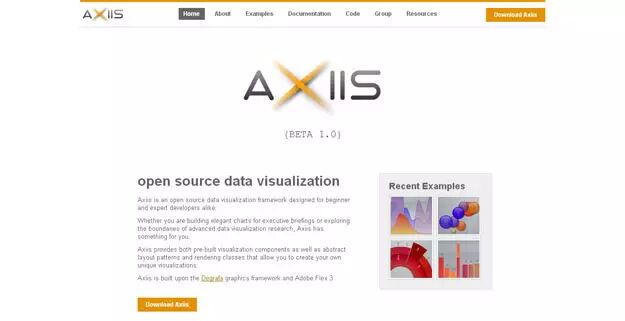 Axiis是一个开源的数据可视化框架。Axiis让开发人员通过简洁直观的标记,清晰明白地定义数据可视化方式。Axiis在设计上非常强调代码优雅,可以让你的代码像输出的图形一样美观。Axiis既提供了开箱即用的可视化组件,也提供了抽象布局模式和渲染类,可实现自定义可视化。