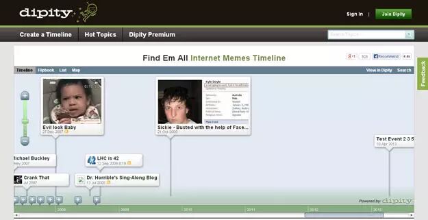 Dipity是一款基于Timeline的Web应用软件,用户可以将自己在网络上的各种社会性行为(Flickr、Twitter、Youtube、Blog/RSS等)聚合并全部导入到自己的 Dipity 时间轴上。