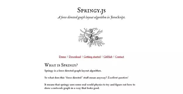 Springy.js设计轻量并且简单。它提供了一个抽象的图形处理和计算的布局,支持Canvas、SVG、WebGL、HTML元素。