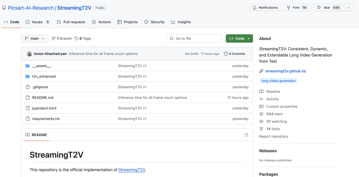 根据GitHub网站,UT奥斯丁等机构于4月5日发布了视频生成模型StreamingT2V的代码和模型。此前3月22日,团队在arXiv上发表论文,提出了一种AI视频生成技术StreamingT2V,可以生成高度一致、长度可扩展的视频。据介绍,StreamingT2V能够生成1200帧、时长120秒的长视频,且理论上可以生成无限长的视频。