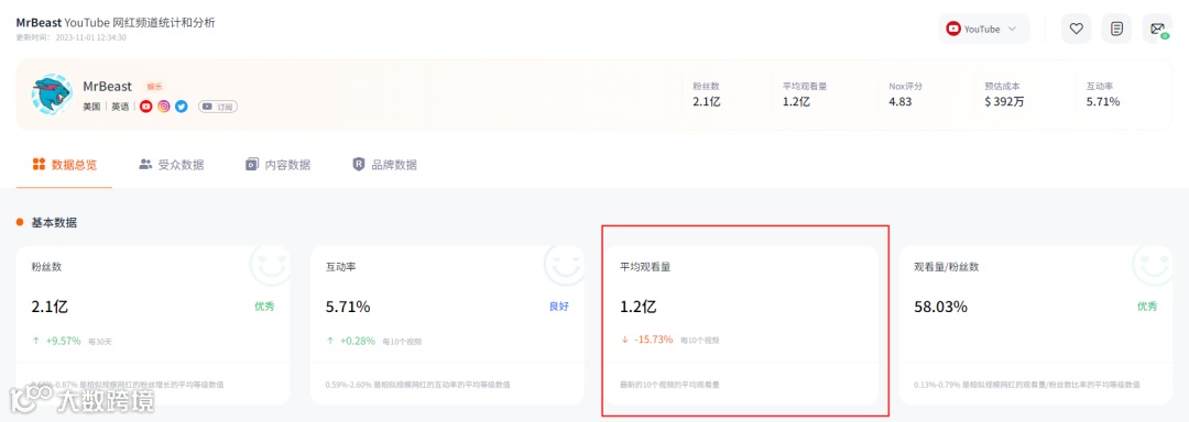优质的网红,往往拥有一定的粉丝基数,与粉丝数相匹配的平均观看量、互动率,观看订阅比合理,且定期更新视频。