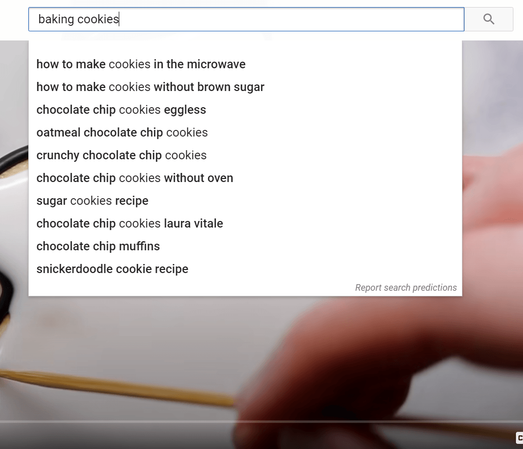 当您输入诸如“烘烤饼干”之类的关键字时,您可能会注意到YouTube建议与您刚刚输入的内容相关的搜索。