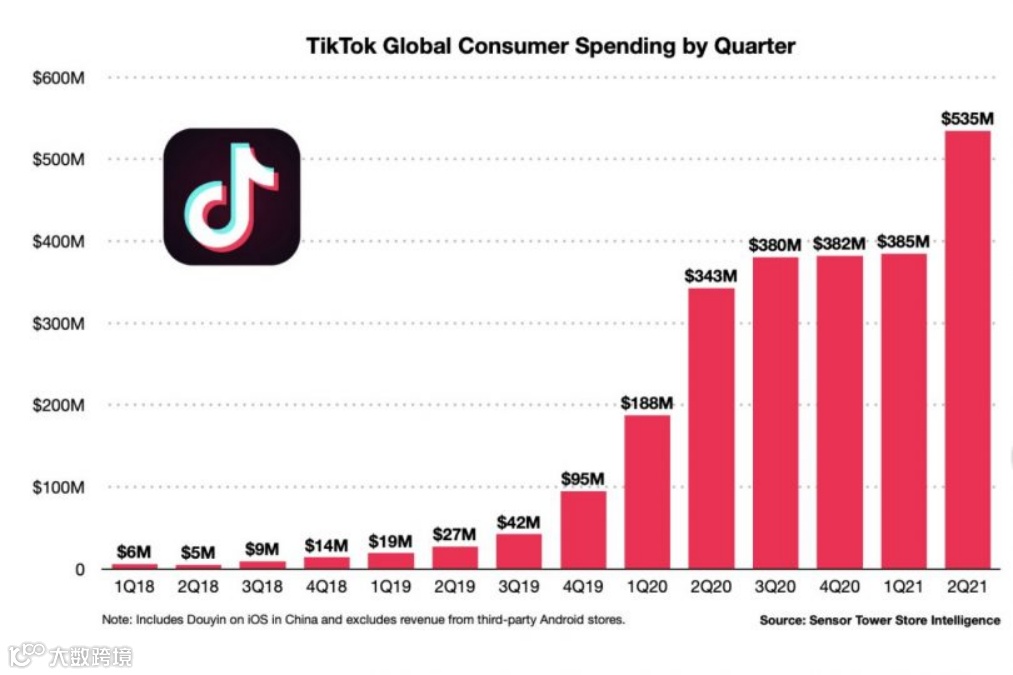 图源:sensortower,TikTok全球用户季度消费逐年攀升