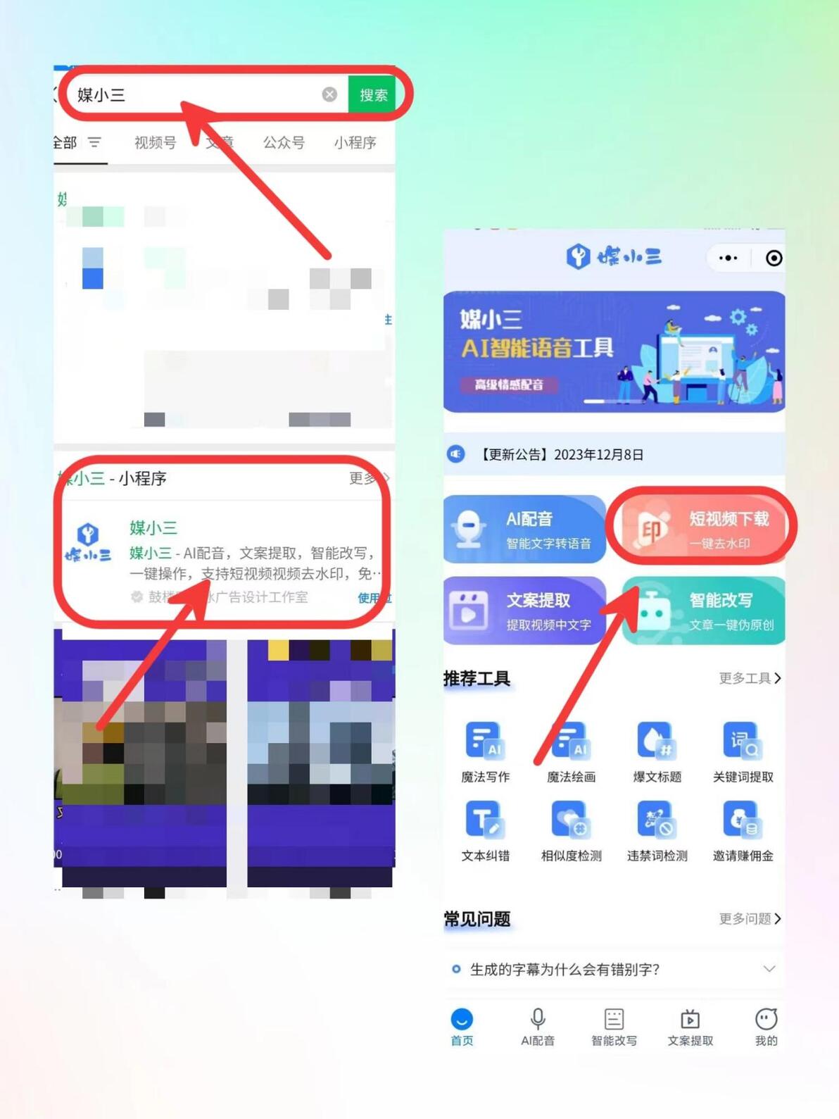 再然后在微信搜索“媒小三”,找到媒小三小程序,选择“短视频下载”。