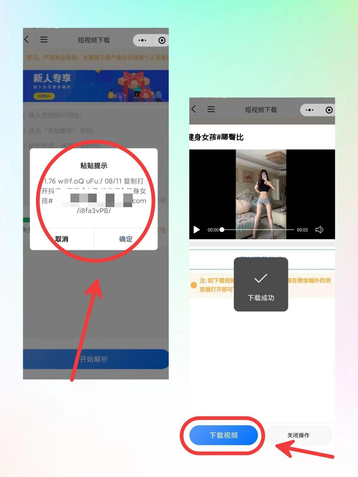 进入小程序后,系统自动的会识别到刚刚复制的视频链接,然后点击解析,解析好后点击下载视频,就完成了。