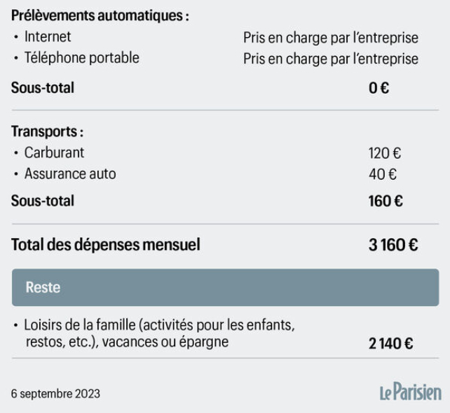 罗宾妻子每月的净收入为 3000 欧元。夫妻俩共同支付一家人在尼斯的公寓的房租(1900 欧元),以及电费、房屋保险、燃油费和食品采购费等日常开支。两人把剩下的 2100 欧元用于家庭出游、业余爱好和度假。
